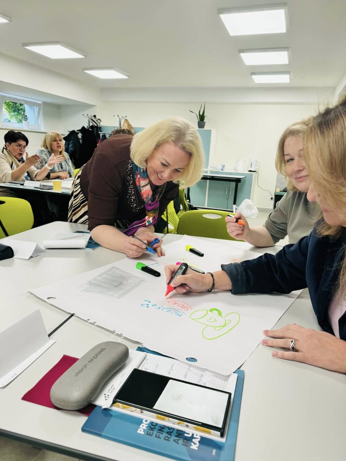 Mokymų metu mokytojos gilina žinias ir praktiškai išbando būdus, kaip įdomiai ir veiksmingai ugdyti pradinių klasių mokinių finansinį raštingumą.