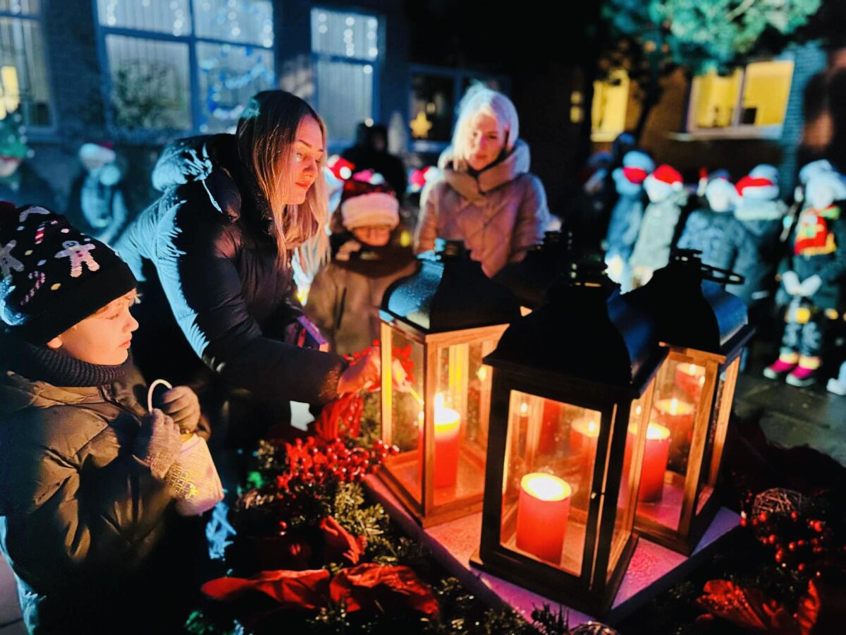 Su šiluma širdyse uždegėme trečiąją adventinio vainiko žvakę -DŽIAUGSMO žvakę. Ji primena mums apie šviesą tamsoje, šilumą širdyse ir mažus, bet labai svarbius kasdienius stebuklus. Šią prasmingą akimirką padovanojo 3a, 3b klasių tėveliai Jovita Bernotienė ir Jurgita Lankutytė. Jos ne tik uždegė džiaugsmo žvakę, bet ir pasidalijo nuoširdžiais, širdį paliečiančiais palinkėjimais.