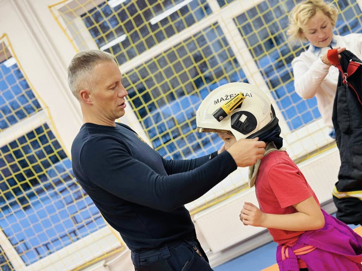 Mokiniai džiaugėsi galimybe pabendrauti su tikru čempionu ir pasisemti sportinio ryžto! Ir tai buvo tik pradžia – jų laukė dar vienas įspūdingas iššūkis! Ketvirtokai pasimatavo tikrą ugniagesio aprangą – sunkius batus, šalmą, kaukę ir kitą įrangą. Tai suteikė daug įspūdžių ir džiaugsmo.